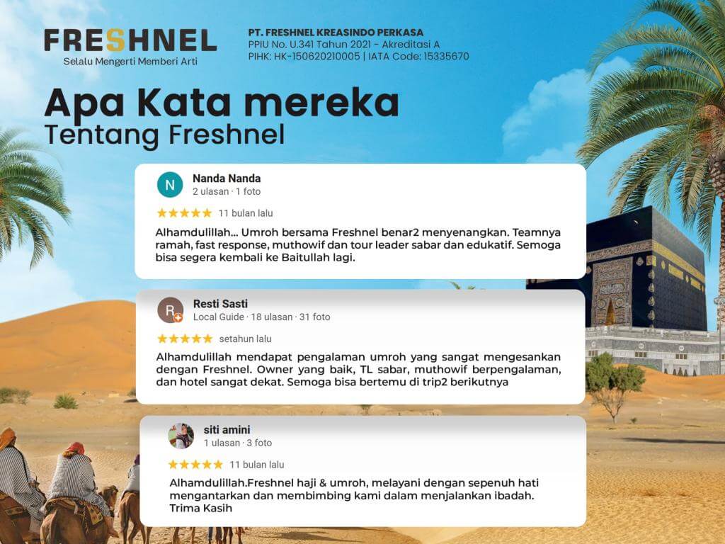 - Menyetorkan biaya pendaftaran sebesar Rp. 5.000.000 (lima juta rupiah) untuk dicatat sebagai calon jamaah umroh PT Freshnel Kreasindo Perkasa. Biaya pendaftaran tidak bisa dibatalkan.
