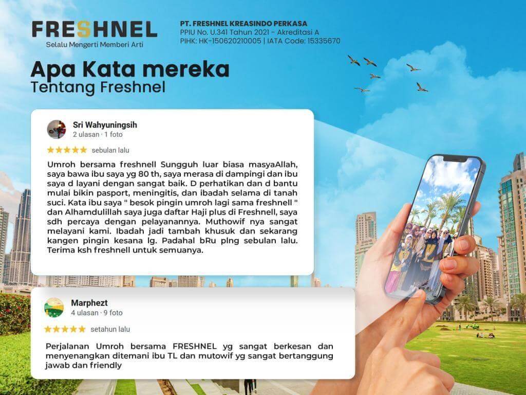 - Menyetorkan biaya pendaftaran sebesar Rp. 10.000.000 (sepuluh juta rupiah) untuk dicatat sebagai calon jamaah umroh PT Freshnel Kreasindo Perkasa. Biaya pendaftaran tidak bisa dibatalkan.