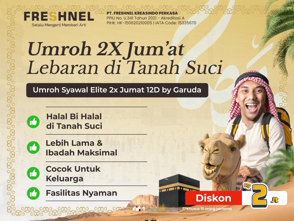 - PT Freshnel Kreasindo Perkasa berhak menunda keberangkatan calon jamaah apabila belum melakukan pelunasan sampai waktu yang ditentukan atau belum memenuhi persayaratan sebagai jamaah umroh yang ditetapkan oleh pemerintah Indonesia dan Kerajaan Saudi Arabia.