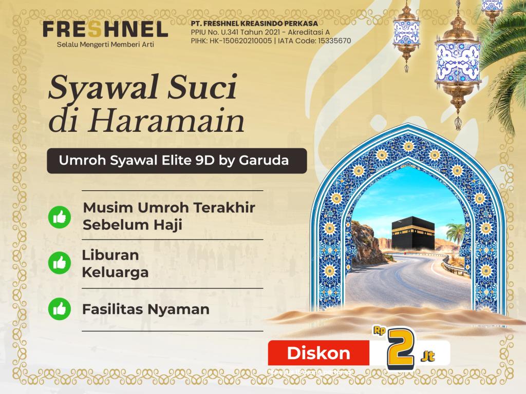 - PT Freshnel Kreasindo Perkasa berhak menunda keberangkatan calon jamaah apabila belum melakukan pelunasan sampai waktu yang ditentukan atau belum memenuhi persayaratan sebagai jamaah umroh yang ditetapkan oleh pemerintah Indonesia dan Kerajaan Saudi Arabia.
